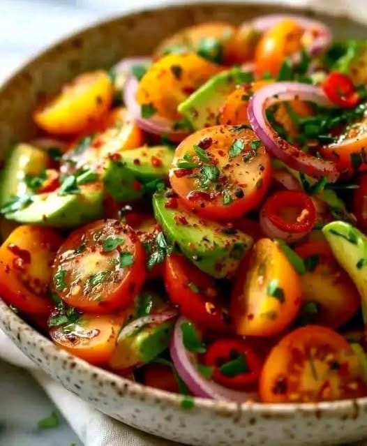 Avocado salad has swiftly become a beloved staple in many households, thanks to its fresh, vibrant flavors and nutritious ingredients. This simple yet satisfying salad combines creamy avocados, juicy cherry tomatoes, crisp red onions, and a zesty dressing for a refreshing burst of flavor in every bite. Perfect as a side dish or a light meal on its own!