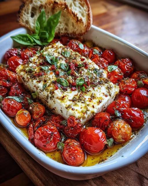 This Mediterranean-inspired dish combines creamy feta cheese, juicy cherry tomatoes, garlic, and extra virgin olive oil baked until bubbly and golden. The warmth softens the feta into a spreadable texture while the roasted tomatoes burst with natural sweetness. Perfect as a dip, side dish, or served over pasta or crusty bread—it’s simple, comforting, and packed with flavor.