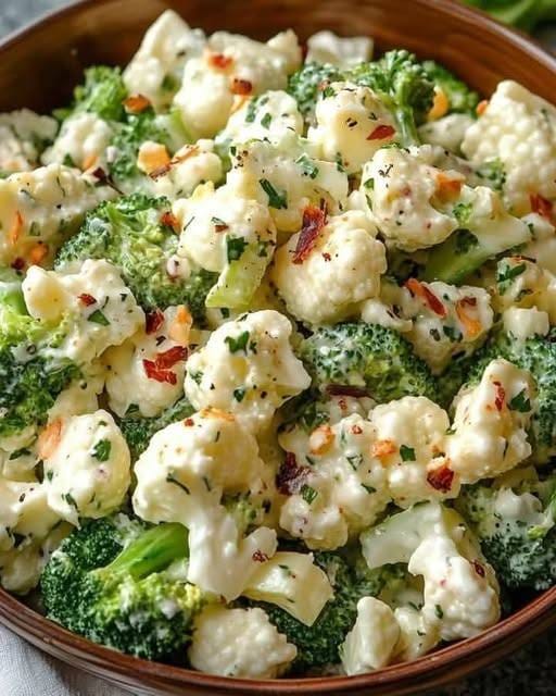 This Broccoli Cauliflower Salad is a refreshing, colorful, and crunchy dish that’s perfect as a side for summer cookouts, holiday gatherings, or a quick weekday meal. Fresh broccoli and cauliflower florets are tossed with crispy bacon, shredded cheese, and a creamy tangy dressing. It’s the perfect balance of savory, sweet, and crunchy in every bite.