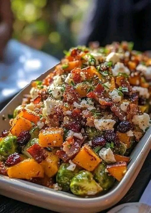 This vibrant Cranberry-Glazed Roasted Veggie Salad combines caramelized butternut squash, roasted Brussels sprouts, and tender sweet potatoes tossed with dried cranberries, creamy goat cheese, and a tangy-sweet cranberry glaze. It’s the ultimate blend of savory, sweet, and tart — perfect for holiday tables or a cozy autumn dinner. Each bite bursts with fall flavors and colorful goodness.