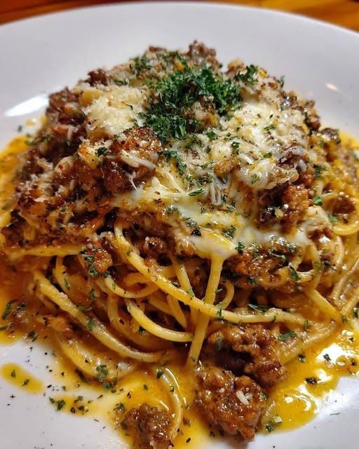 This Creamy Garlic Butter Spaghetti with Parmesan Beef is a rich, comforting pasta dish that combines tender strips of beef with a luscious garlic-butter cream sauce, perfectly coating al dente spaghetti. Finished with freshly grated Parmesan, this hearty dinner is a restaurant-quality meal that you can whip up at home in less than 40 minutes. The flavors are savory, garlicky, and cheesy—perfect for family dinners or a cozy date night.