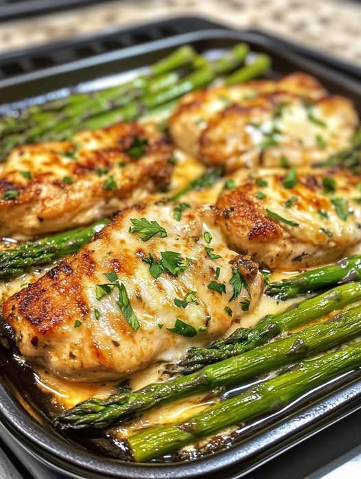 This Creamy Garlic Parmesan Chicken with Asparagus is a rich, comforting dish featuring tender chicken breasts simmered in a luscious garlic-Parmesan cream sauce with fresh asparagus. Itβs a one-pan meal that feels gourmet yet is easy enough for a weeknight dinner. Perfect with pasta, rice, or crusty bread to soak up the creamy sauce!