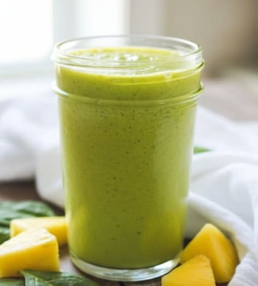 Using frozen pineapple/banana makes the smoothie naturally creamy and cold without ice.