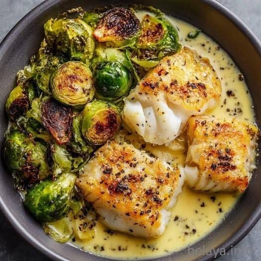 These vibrant bowls combine flaky, buttery cod fillets with tangy lemon and garlic, paired with crispy roasted Brussels sprouts and fluffy rice or quinoa. It’s a nutritious, easy-to-make weeknight dinner that feels elevated, fresh, and satisfying.