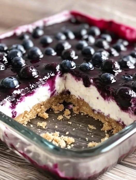 Spread the blueberry topping over the cheesecake layer.