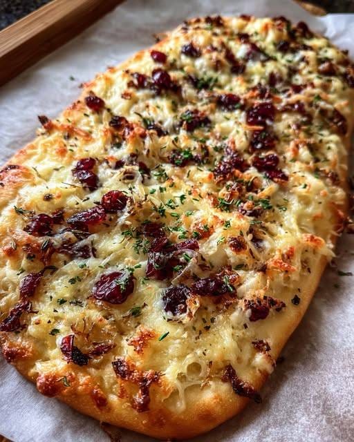 This Rustic Caramelized Onion and Cranberry Flatbread with Gruyère Cheese is a beautifully balanced dish that combines sweet, savory, and tangy flavors. Caramelized onions bring rich depth, cranberries add a pop of tart sweetness, and melted Gruyère provides a nutty, creamy finish. Perfect as an appetizer, light dinner, or a festive party dish, this flatbread feels gourmet yet is simple to prepare.