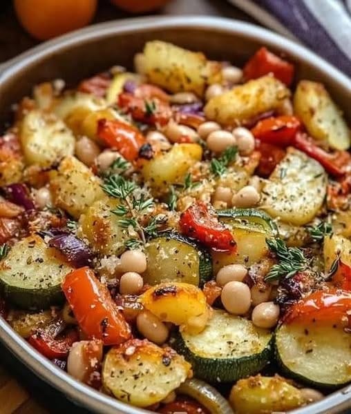 This Rustic Roasted Vegetable Bake with Cannellini Beans is the perfect comfort food for both hearty eaters and health enthusiasts. Packed with colorful roasted vegetables—like zucchini, bell peppers, carrots, and cherry tomatoes—and creamy cannellini beans, it’s a nourishing vegetarian dish full of flavor and texture. The combination of caramelized veggies, fragrant herbs, and a light olive oil drizzle gives it a Mediterranean flair, while the beans add protein and creaminess that make it satisfying enough for a main course.