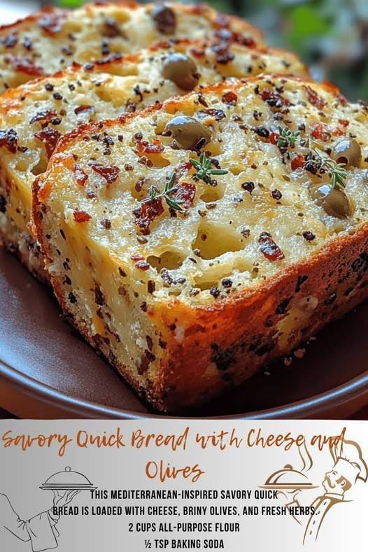 This Mediterranean-inspired savory quick bread is bursting with flavor from briny olives, melty cheese, and fresh herbs. Unlike traditional breads, this recipe requires no yeast and no kneading—just mix, bake, and enjoy! It’s perfect as a snack, side dish, or appetizer, and pairs wonderfully with soups, salads, or wine.
