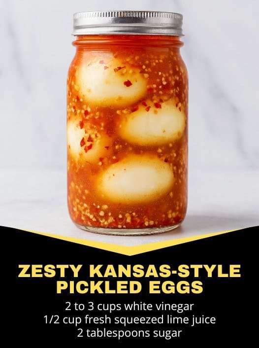 A: Kansas bars often serve bold, zesty, and sometimes spicy versions of pickled eggs, usually alongside beer – this recipe captures that flavor tradition.