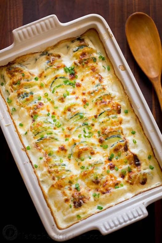 Ingredients For Zucchini Potato Bake (Creamy Garlic Alfredo Style)